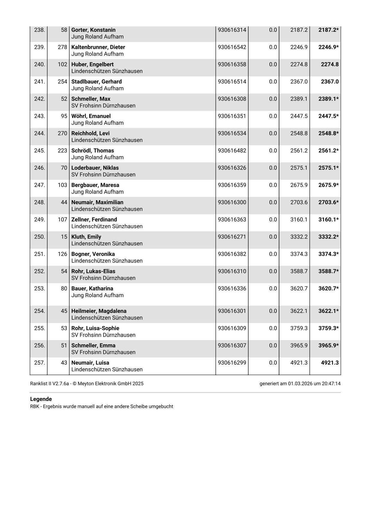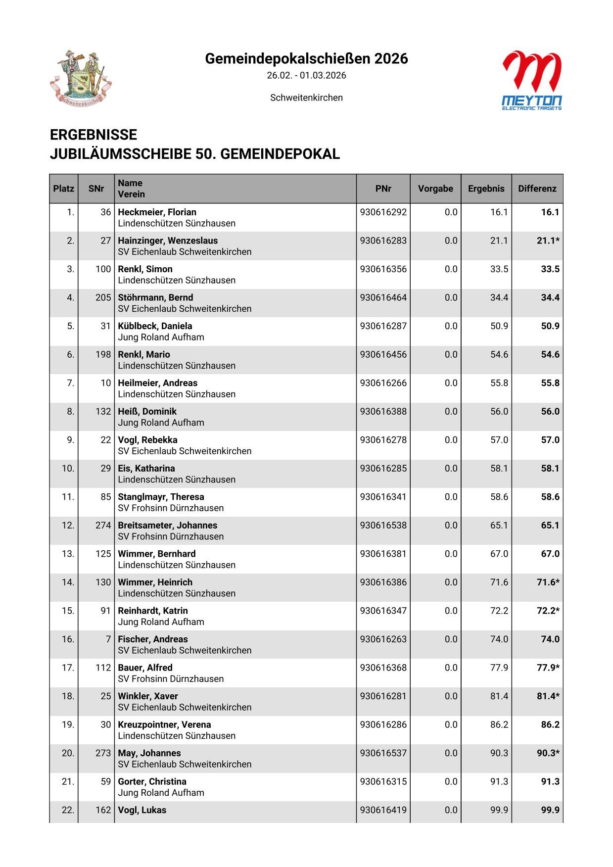Bei den Ergebnissen zu der Jubiläumsscheibe zum 50. Gemeindepokal fehlt noch der Vorgabewert.